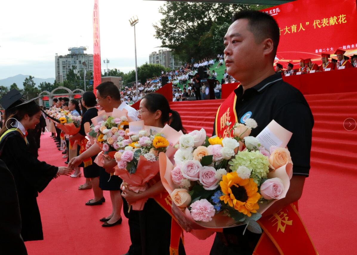 22名学生代表向周海萍、毛雪华等22位在课堂教学、科研指导、实践指导、文化教导等“十大育人”工作中为大家悉心指导和辛勤付出的老师表示感谢和敬意。