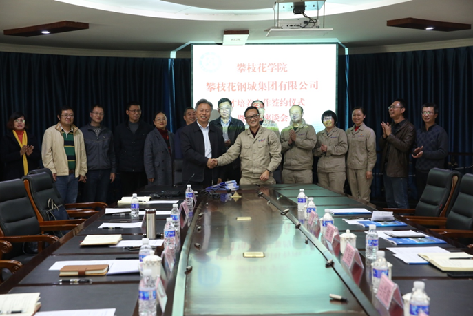 我校党委行政办公室、科研处及钒钛学院等相关负责人,以及攀枝花钢城集团有限公司力资源部(组织部)、工程技术中心等相关部门负责人参加了签字仪式和交流座谈。