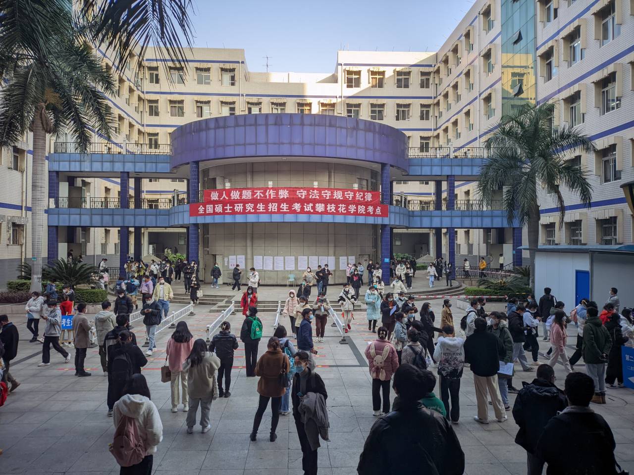 12月24日至25日,2023年全国硕士研究生招生考试攀枝花学院考点如期举行。我校共设置127个普通考场、2个专用考场和14个应急处置考场,共有4863名考生在我校考点顺利参加考试。全校共组织300余名监考老师、200名考务人员和大批后勤安保人员,认真做好考务组织、疫情防控、后勤安保等工作,通力保障考试顺利举行。同时,2023年是我校硕士研究生首届招生,全国共478名考生报考我校。
