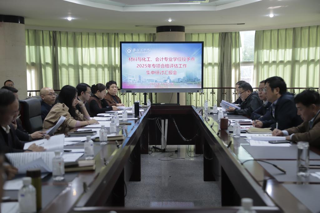 会上,研究生处传达了国务院学位委员会《关于开展2025年学位授予点专项合格评估工作的通知》精神及上级相关工作要求,并从评估目标、范围、组织架构、内容标准到程序时间安排等方面进行系统说明,重点强调了数据填报规范、材料准备要求及各关键时间节点。经管学院、材料与化工学院作为参评单位,分别汇报了会计、材料与化工两个专业学位硕士点的建设成效及评估筹备进展,介绍了当前工作推进情况、存在的重点难点及下一步工作计划。评审专家组对学位授权点的建设情况进行了讨论与评议,重点围绕办学方向、办学定位、质量标准、管理制度、师资队伍、教学质量、学风建设等方面进行深入交流。