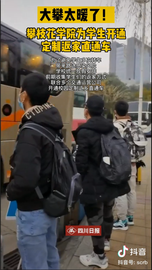 温暖回家路,攀枝花学院开通定制返家直通车https://sichuan.scol.com.cn/ggxw/202101/58020864.html