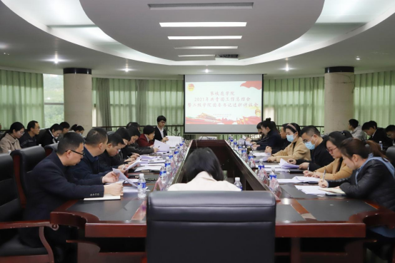 为深入学习贯彻习近平新时代中国特色社会主义思想和党的十九届六中全会精神,推进从严治团,全面总结我校2021年共青团工作,团委于12月23日在办公楼四楼会议室召开2021年共青团工作总结交流会暨二级学院团委书记述职评议会。党委副书记胥刚、团委及二级学院分管学生工作领导、分团委书记、团委全体教师、各学院团委学生会学生干部代表共计40余人参会。
