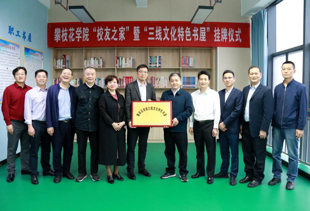 10月14日,我校在产教融合大楼举行了“校友之家”暨“三线文化特色书屋”挂牌仪式。攀枝花市总工会副主席张平,攀枝花市文联副主席李吉顺,攀枝花市图书馆馆长潘基安,攀枝花市含章书院创始人文顺华和总顾问刘胜利,学校招就处和图书馆相关负责人以及我校校友工作志愿者协会部分学生干部参加了挂牌仪式。副校长王兵出席挂牌仪式并授牌。