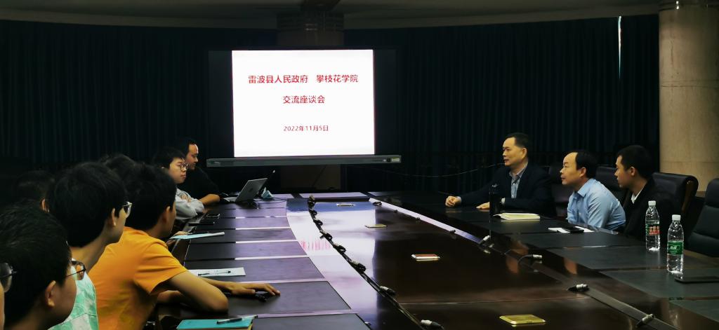 刘海峰详细介绍了雷波县的县情,相关企业发展状况,希望依托攀枝花学院专业、学科、人才优势,在企业科技攻关、节能降耗、安全生产、人才培养、人才储备、校企合作等方面精准对接,深入交流。刘海峰热忱欢迎攀枝花学院有志青年到雷波县干事创业,为雷波县企业发展、乡村振兴提供智力支持,助力雷波县经济社会更好更快发展。