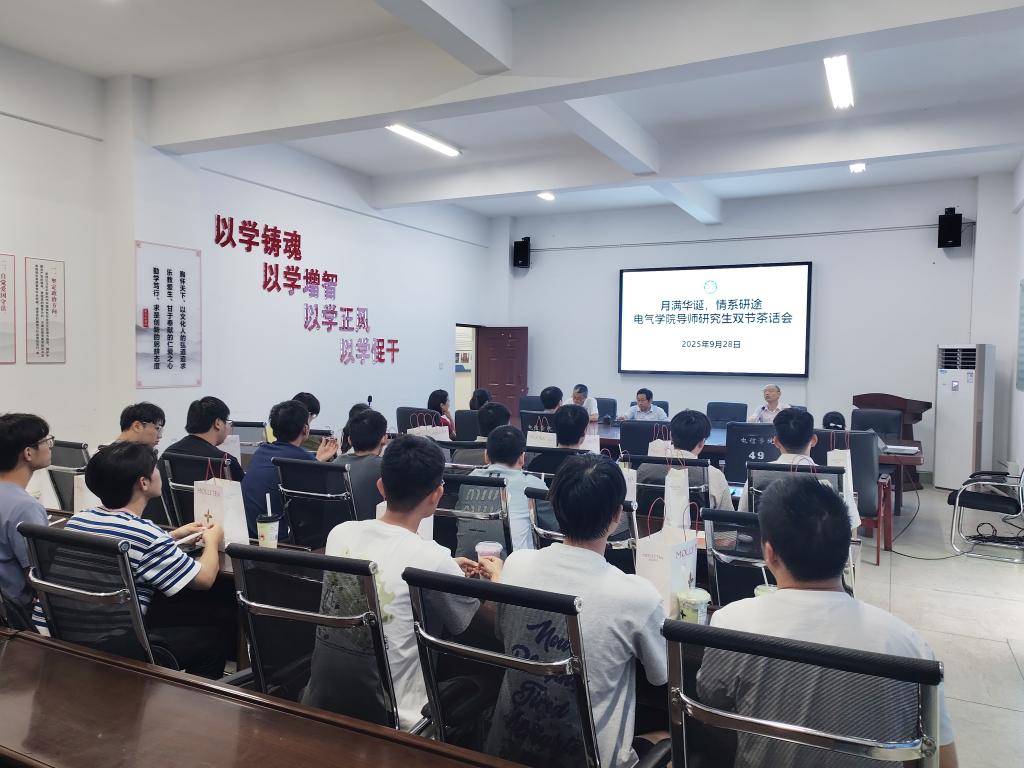 中秋逢国庆,情暖电气园。928日下午,电气信息工程学院在学院会议室举办“月满华诞·情系研途”导师研究生双节茶话会。学院领导、研究生导师及全体研究生欢聚一堂,畅谈科研心得、共叙师生情谊,喜迎双节到来。院长向国齐、副院长帅定新、廖其龙,研究生导师、研究生管理相关人员以及学院全体研究生参加会议。会议由副院长帅定新主持。