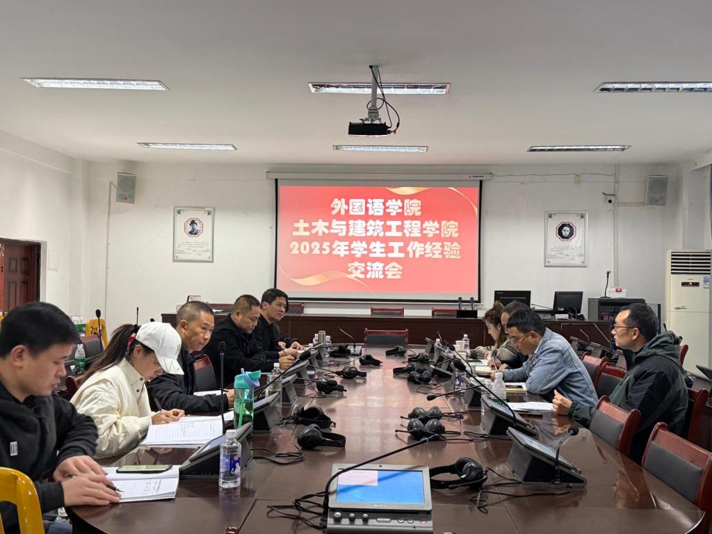 12月19日上午,外国语学院与土木与建筑工程学院在明德楼三楼同传室联合开展2025年学生工作经验交流会。外国语学院党委书记付乔,外国语学院党委副书记、纪委书记张健,土建学院党委副书记、纪委书记付建以及两院分管学生工作领导与辅导员代表参加交流会,共同探讨学生工作新思路、新方法。