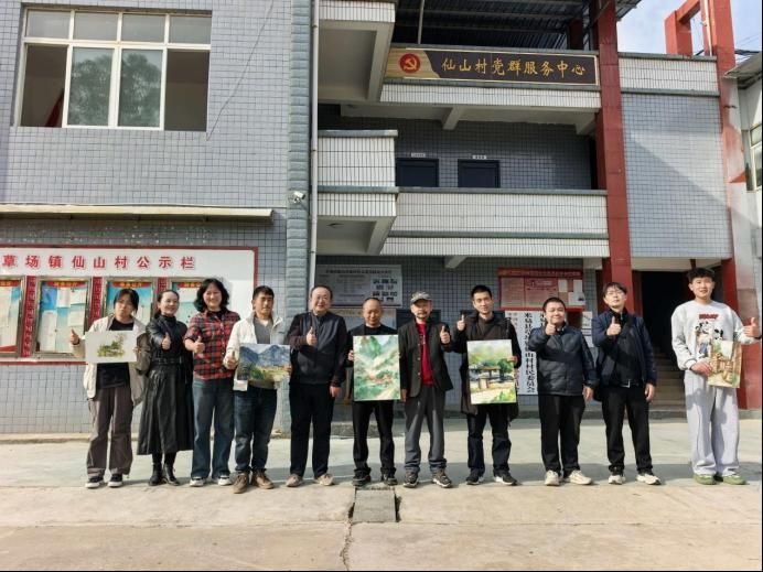 12月11日上午,艺术学院院长孙载斌带领专家团队及硕士研究生一行9人抵达仙山村开展专家服务示范基地活动。本次活动是为仙山村村史馆创作美术写生作品和摄影作品,用艺术描绘美丽仙山,记录仙山村乡愁。