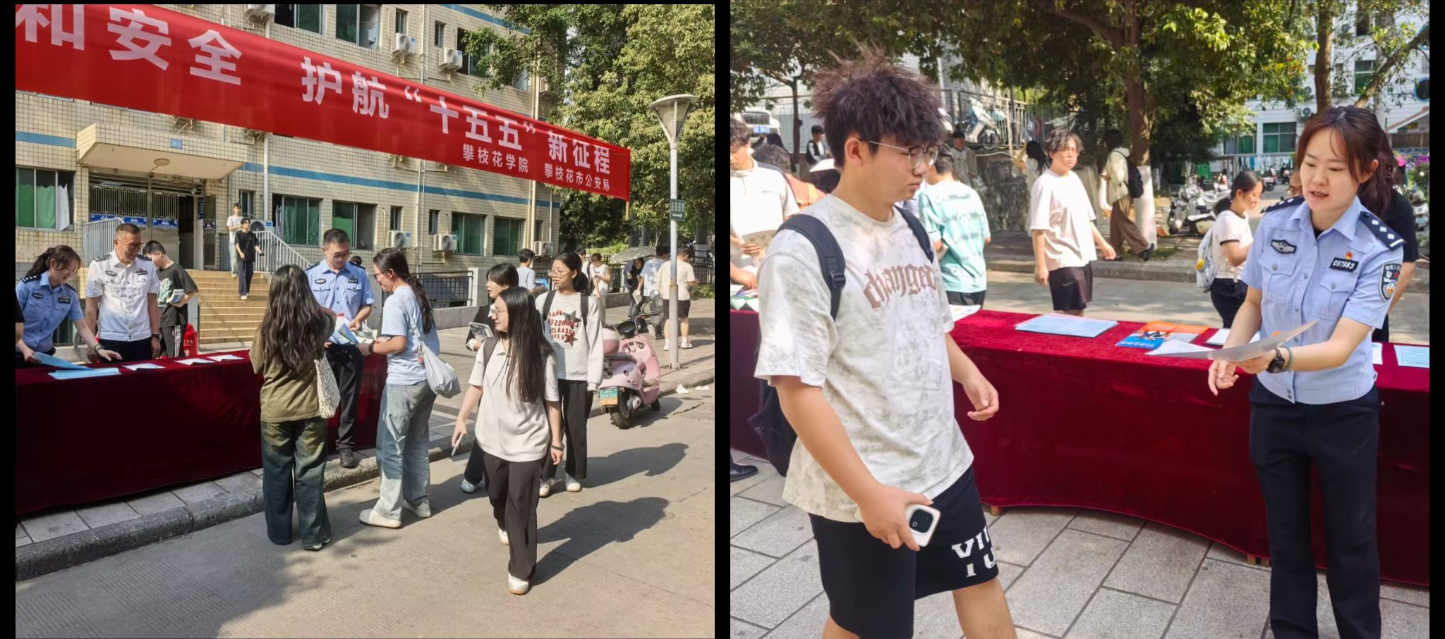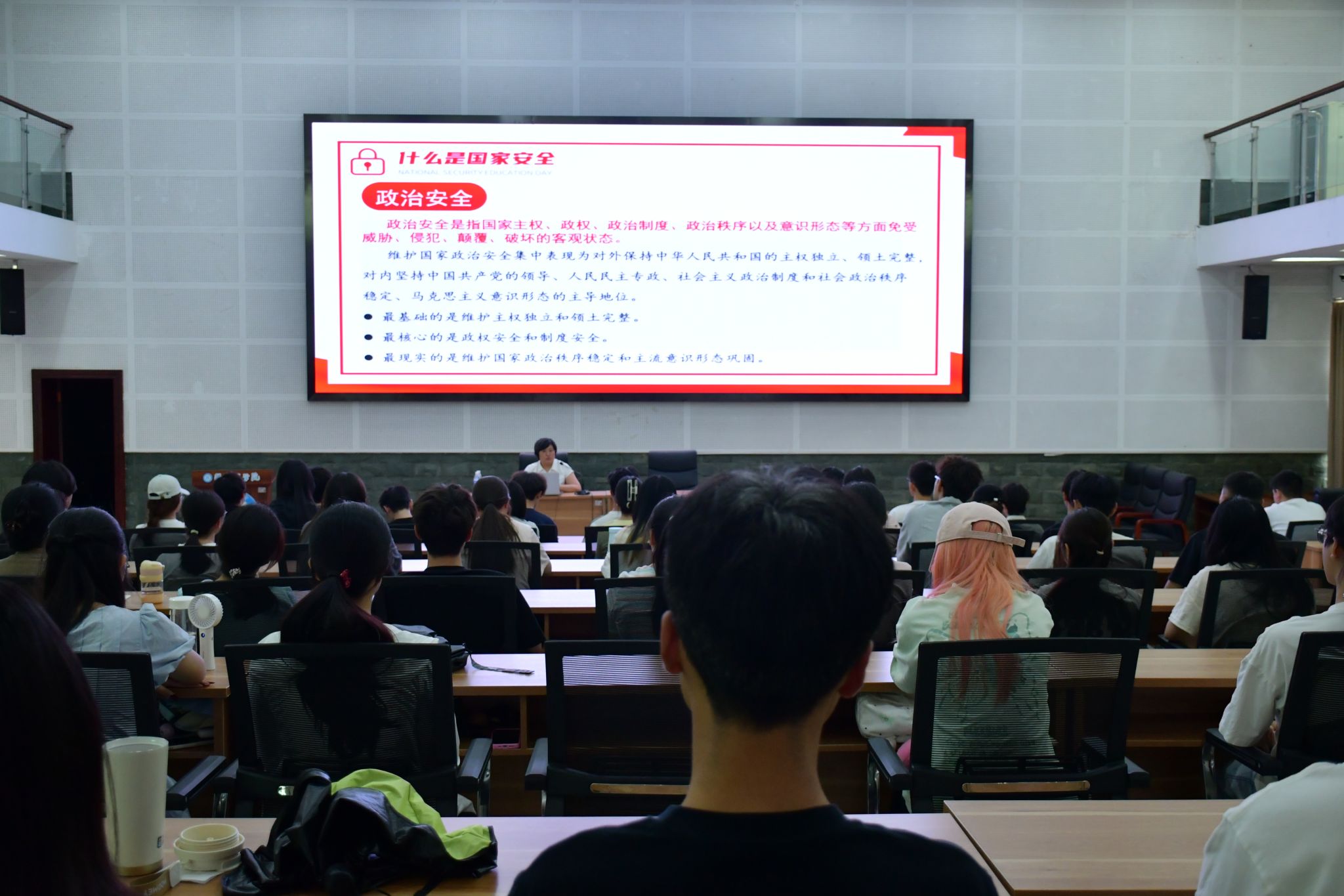 线下活动走深走实。4月14日,学校在图书馆博雅厅举办国家安全专题讲座,法学院党委书记张琳以“明辨•警惕•守护:新时代大学生的国家安全必修课”为题,围绕国家安全基本常识、危害国家安全的行为界定、提升国家安全维护能力三大核心内容,系统解读《国家安全法》《反间谍法》等法规,清晰阐释政治、网络、生物等16个领域安全内涵,100余名学生干部代表现场聆听 。4月15日上午,学校联合辖区派出所走进“一站式”学生社区,开展“校警共建护国安”专项活动,通过展板展示、案例剖析、互动答疑等形式普及国家安全、消防安全、交通安全、反诈防骗等知识,深化校地共建共治,夯实校园安全基层防线。