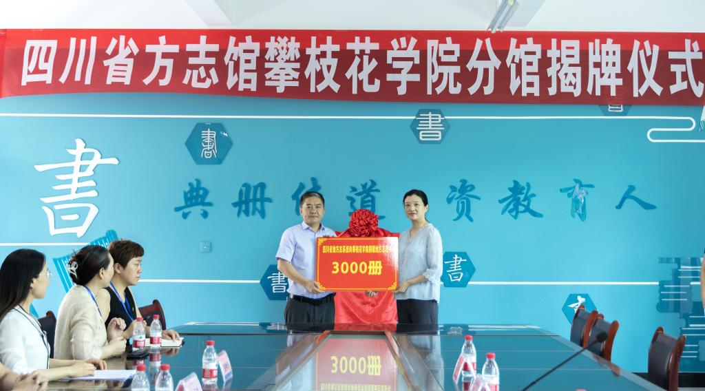邓瑜在讲话中对四川省方志馆攀枝花学院分馆开馆表示祝贺,并代表省地方志办向四川省方志馆攀枝花学院分馆赠送志鉴成果及地情读物3000余册。她表示,省地方志办将在今后每年常态化组织全省向分馆赠送新编的志书、年鉴、地情读物。她指出,攀枝花民族文化和地域文化特色鲜明,设立四川省方志馆攀枝花学院分馆,是地方志与高校在资源共建、共享、共研的双赢合作,希望攀枝花学院分馆管好、用好地方志文献,更好发挥分馆文化功能和教育功能,也希望早日看到分馆建设、利用和科研取得成果。