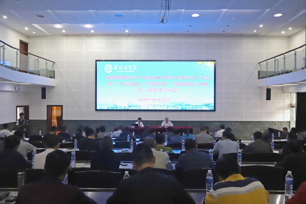 10月25日,我校在学术报告厅召开党委理论学习中心组2019年第十次学习扩大会暨“不忘初心、牢记使命”主题教育读书班第二次集中学习会。校领导班子、副县级以上干部、各单位助理、支部书记、组织员、辅导员代表、学生代表和用人单位代表参加学习会。校党委书记肖立军主持会议。