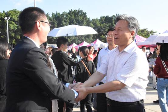 11月2日上午,我校举办2020届毕业生双选会。校党委副书记、校长王曙光、副校长石维富莅临现场看望了参会师生,了解了毕业生应聘情况,并与部分企业代表进行了亲切交流。