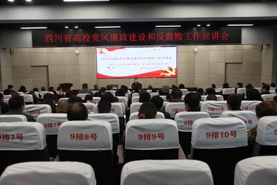 12月19日下午,四川省高校党风廉政建设和反腐败工作宣讲会在我校纪检监察学院培训室召开。中共四川省纪委常委、省人大常委会委员刘光辉主讲。全校副县级以上干部,资产管理处、后勤管理处、安信物业等单位相关人员参会。党委副书记、校长王曙光主持会议。