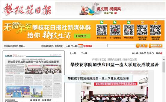 《攀枝花日报》报道我校应用型一流大学建设成效