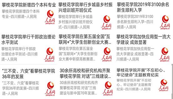5月7日,《四川教育发布》微信公众号以《行程16000多公里,四川这所高校寻访58位校友》为题,5月21日《中国教育报》第四版,以《让青春绽放在祖国最需要的地方——攀枝花学院青年学子扎根边疆纪实》为题,报道我校青年学子志存高远、扎根边疆、报效祖国的感人故事。让我们攀大狠狠地刷了一次存在感,而对于关注了学校各大宣传平台的同学、校友、老师们来说,他们能看到的远不仅仅如此。一年以来,我们通过开展“边疆行”、“沿海行”“校友返校日”等采访宣传系列活动,讲好毕业校友故事。寻访百余名校友,集中大篇幅报道优秀典型20余名。一直战斗在阿克陶县脱贫攻坚一线的赵显勇、张宝贵,在墨脱做36个孩子的姐姐老师龚丽,在中央电视台、深圳电视台担任嘉宾律师的余刚,在西藏拉萨国家电网一呆就是10年的伍应衡,他们平凡动人的故事激励着学弟学妹、鼓舞着广大青年学子。策划开展了包括“新生专访”、“攀大出彩青年”、“校园之星”等一系列专访报道,讲好在校优秀学子故事。通过文字、图片、视频等多种形式展示他们出彩处、动人点,斩获第五届“互联网+”国家级银奖“以钢代钛——电子束镀钛”项目负责人袁丽团队,以366分考入武汉大学神经科的“热心学长”胡平,见义勇为、及时应急处置昏迷者的钱祖鑫,带着弟弟上学的徐一虹,以及马媛媛、向贤真、雷文刚、费浩东等一大批“校园之星”,成为了我们身边的榜样,激励引导青年学子爱国奋进、乐于奉献、开拓创新。