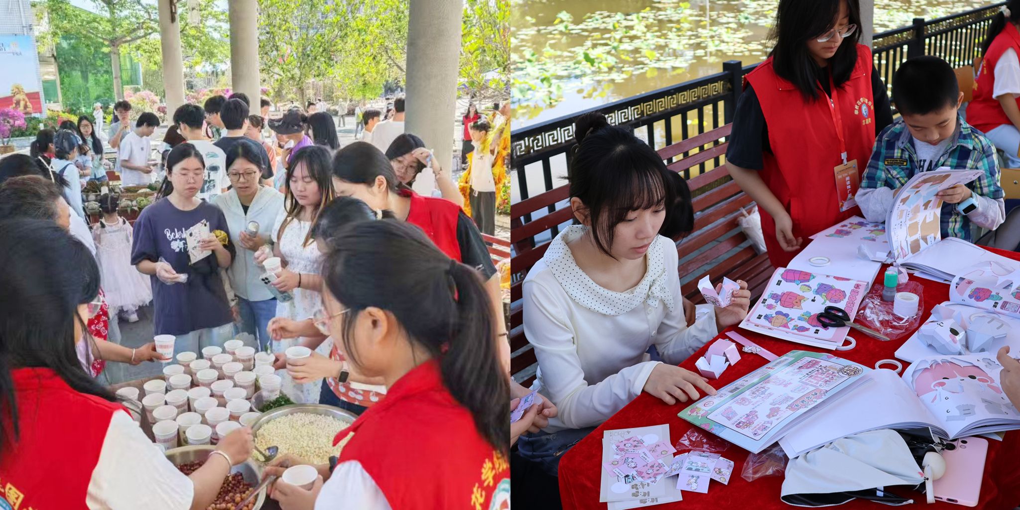4月11日至12日,图书馆联合攀北社区在学校静明湖边举办“行走的非遗文化课堂”暨“书香盈园”集章嘉年华活动。活动以“多彩非遗课堂 传承匠心文脉”为主题,设置舞南狮、包粽子、打油茶等非遗体验项目,以及绕口令、折纸花、书法临摹等闯关游戏,吸引师生及市民1000余人参与。