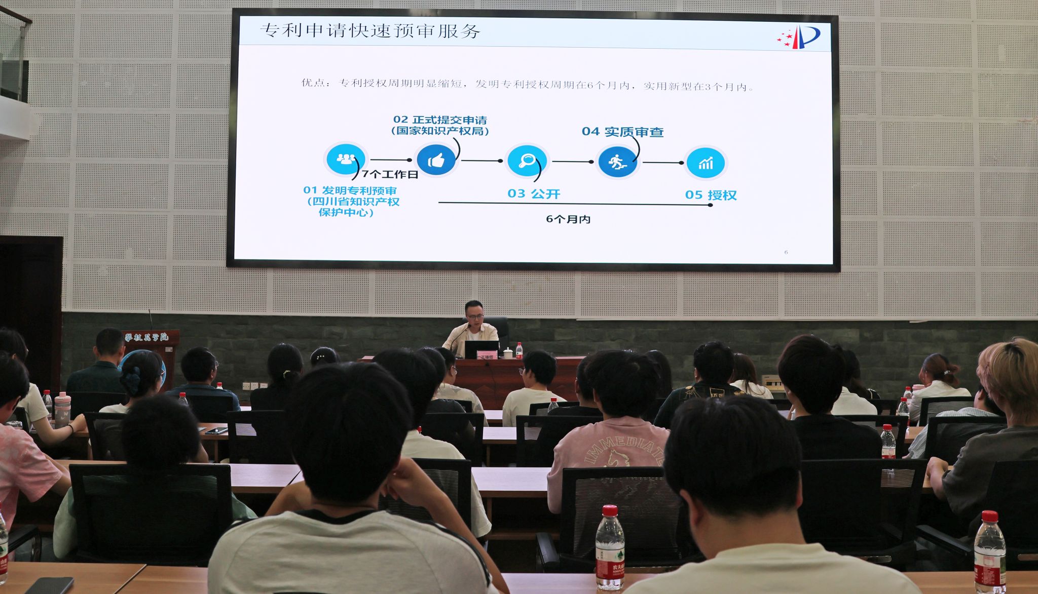 讲座邀请了攀枝花市知识产权服务中心王臻煜主讲。他围绕公共服务主要内容,详细介绍了市知识产权服务中心在专利检索、快速预审、非正常申请预警、商标受理、维权援助、转移转化及纠纷指导等方面的公益服务;聚焦专利申请实务,重点讲解三类专利定义、申请流程及线上办理操作,详细梳理了请求书、说明书、附图、权利要求书等材料撰写注意事项。他还介绍了知识产权服务中心的服务内容和快速预审服务项目情况。