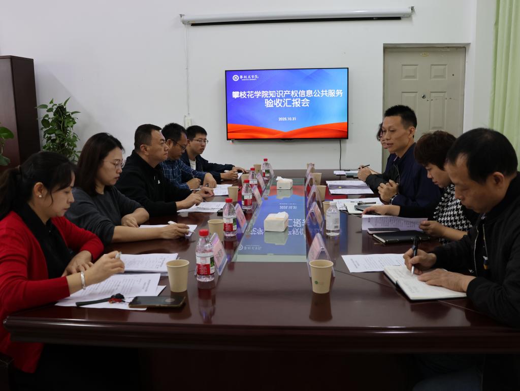 10月31日上午,攀枝花学院知识产权信息公共服务网点验收汇报会在图书馆一楼会议室召开。攀枝花市场监督管理局副局长李英勇一行五人,图书馆馆长王欢、副馆长何中勇以及相关科室负责人参加会议。