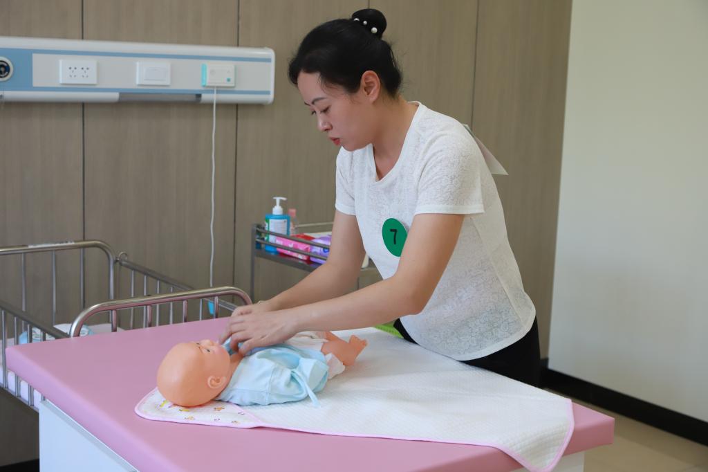 本次大赛的主题为“花城工匠展精神方面,技能精英助力‘三个圈层’”,设置了医院护理、母婴护理、保育员三个竞赛项目。来自攀枝花市相关单位在岗职工、院校教师和学生共54名选手参加了本次比赛。在“攀枝花康养职业技能实训基地”分设了8个考站,每个考站选派了3名裁判进行考评,确保比赛公平公正。整个比赛过程紧张而有序,赛场,选手们精神抖擞,士气高昂,有条不紊地进行比赛。