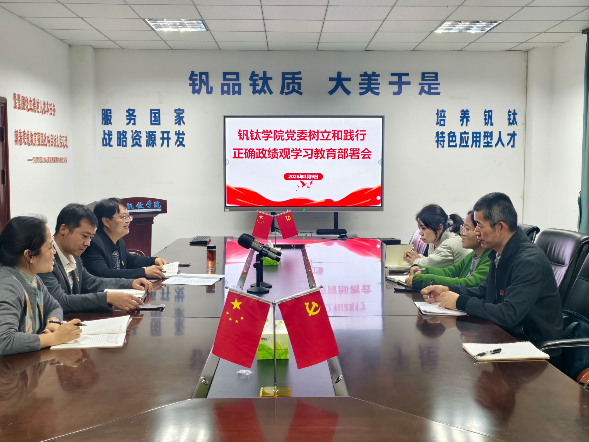为贯彻落实在全党开展树立和践行正确政绩观学习教育,3月9日,钒钛学院党委召开树立和践行正确政绩观学习教育部署会。学院领导班子全体成员、党委委员及党支部书记参加会议,党委副书记马兰主持会议并作动员部署讲话。
